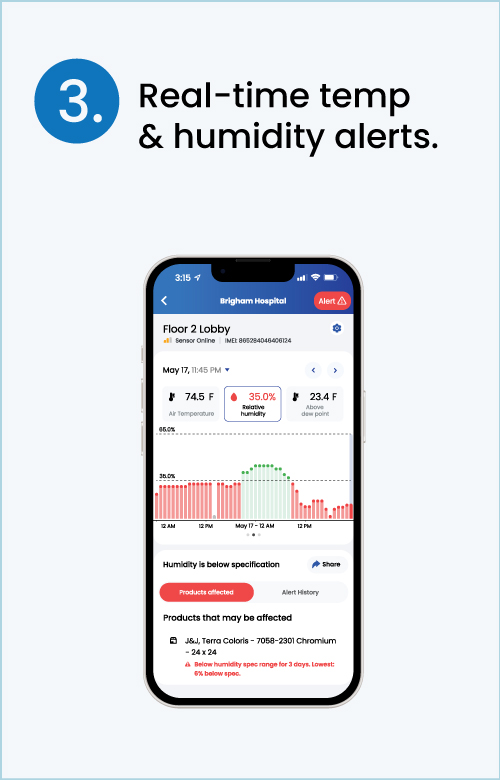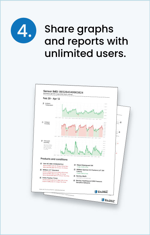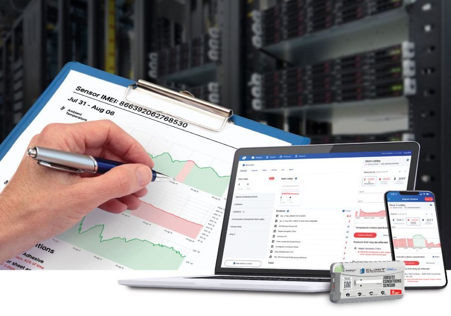 Gone are the days of asking, “what happened over the weekend.” With mobile alerts, you can continuously monitor jobsite conditions and assess risk throughout construction. Equipped with accurate, real-time data, contractors can take proactive measures and implement contingencies to protect materials and keep projects on track despite changing conditions. Jobsite alerts also help ensure installations stay within recommended temperature and humidity ranges, supporting high-quality work and reducing risk.